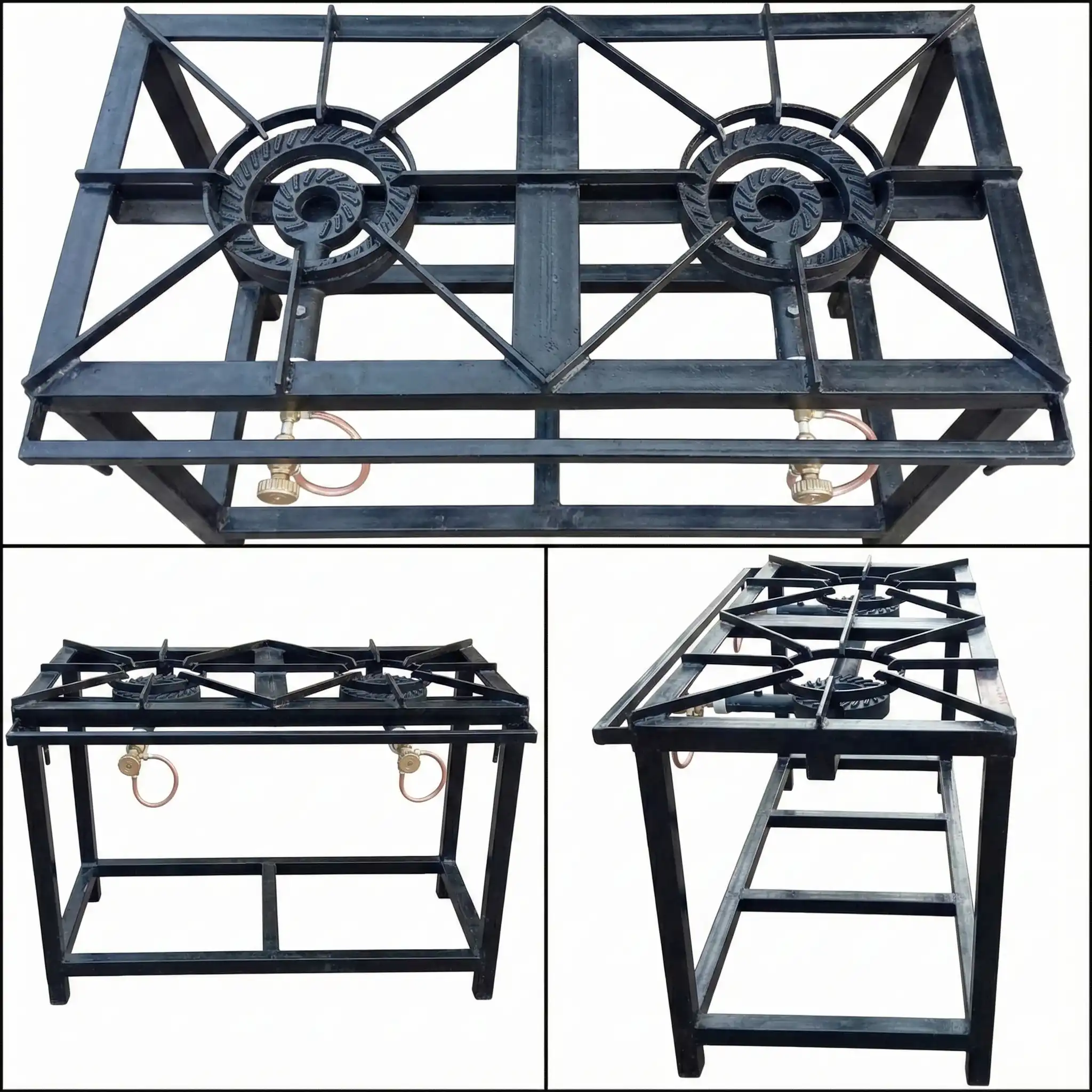 This strong mild steel commercial cooker from Wings Stainless Craft features two burners and a high-quality gas system with control taps, ensuring efficient, safe, and precise cooking results.